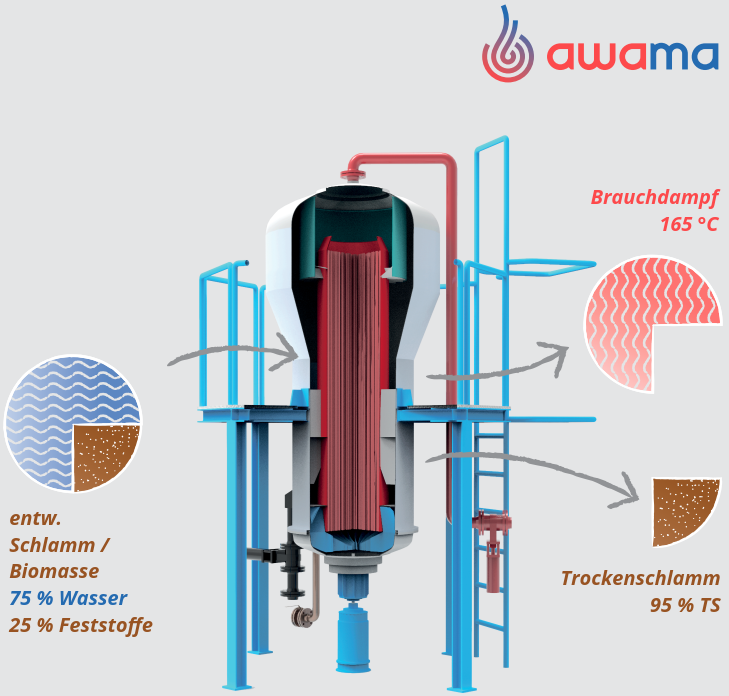 Im Sinne einer nachhaltigen Kreislaufwirtschaft muss es aber das Ziel sein, sÀmtliche Ressourcen aus dem KlÀrschlamm zu nutzen. Hierzu gehört insbesondere auch der Kohlenstoff der zur Senkung der CO2-Emissionen, Erhöhung von Effizienz und ProduktqualitÀt sowie der Verringerung der FlÀchennutzung beitrÀgt. Neben der Schaffung von StoffkreislÀufen dient die Trocknung des KlÀrschlammes und die thermische Verwertung des Kohlenstoffes der Energieversorgung der KlÀranlage.
