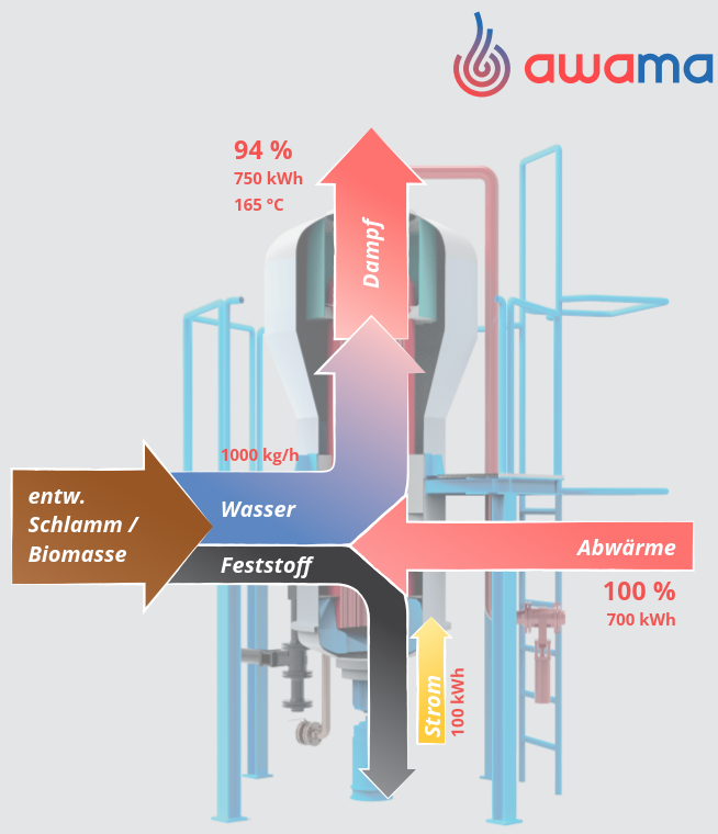 Dazu setzen wir den von uns neu entwickelten Verdampfungstrockner, als WĂ€rmequelle und Dampferzeuger ein. Der Trockner soll in Lizenz gebaut und so in vielfĂ€ltigen AnwendungsfĂ€llen eine nahezu vollstĂ€ndige WĂ€rmerĂŒckgewinnung ermöglichen.