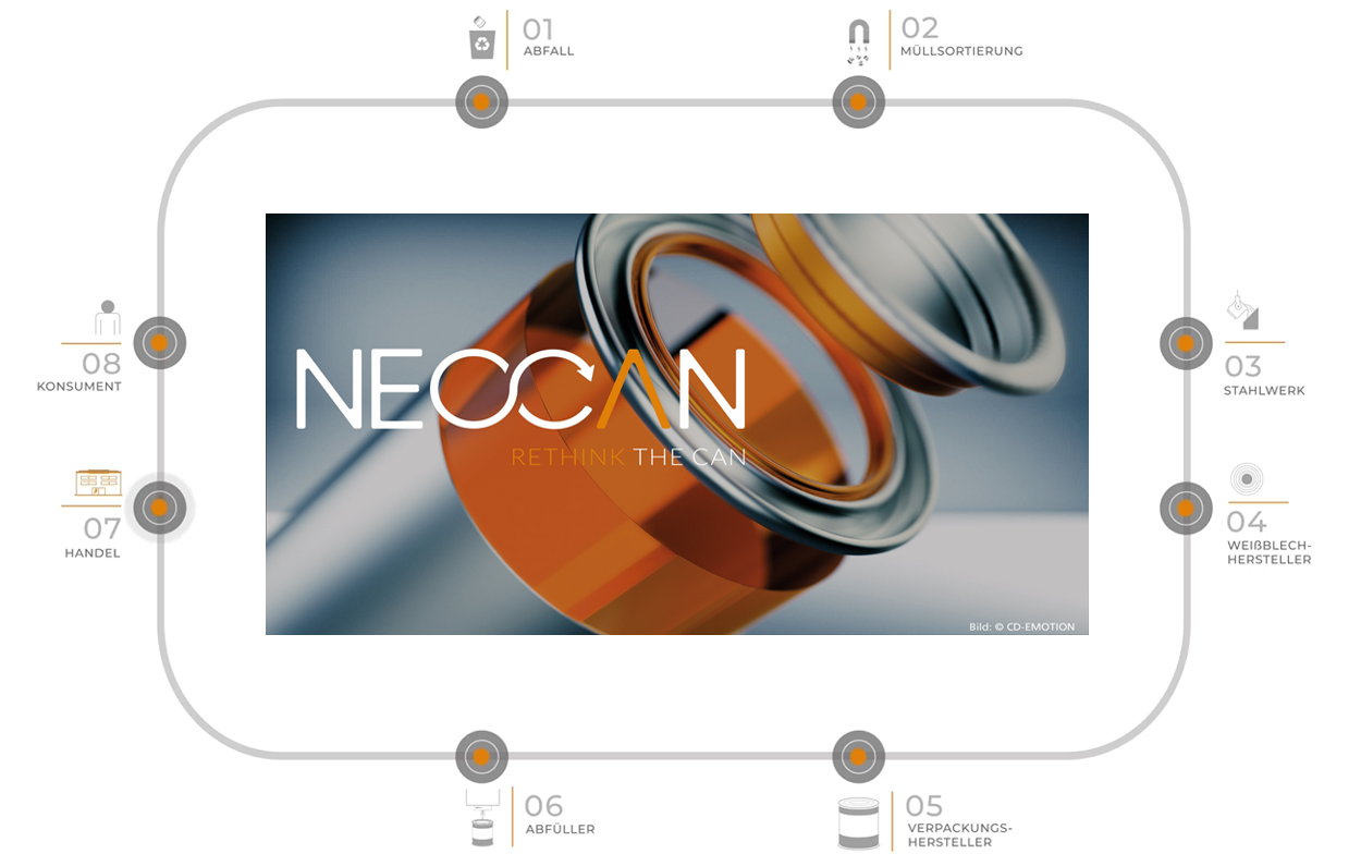 Erfahren Sie, wie die NEOCAN aus bluemint steel eine Kreislaufwirtschaft nicht nur unterstützt, sondern prägt. Entdecken Sie, wie der Kreislauf geschlossen wird, wenn eine ausgediente Verpackung zum Rohstoff für morgen wird, und erleben Sie, wie Energieeinsparung und Ressourcenschonung Hand in Hand gehen.