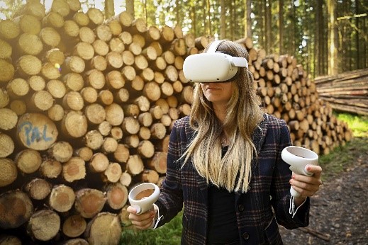 Das „Virtual Reality Forestry Training“ bietet Schulungen als digitales Lehr- und Lernformat in Virtual Reality (VR) an. Nutzende erhalten in VR waldbauliche oder naturschutzfachliche Fragestellungen und können virtuell Baumarten bestimmen, den Zustand von Beständen und Waldflächen bewerten, wertvolle Habitate identifizieren oder Bestandesbegründungen planen.