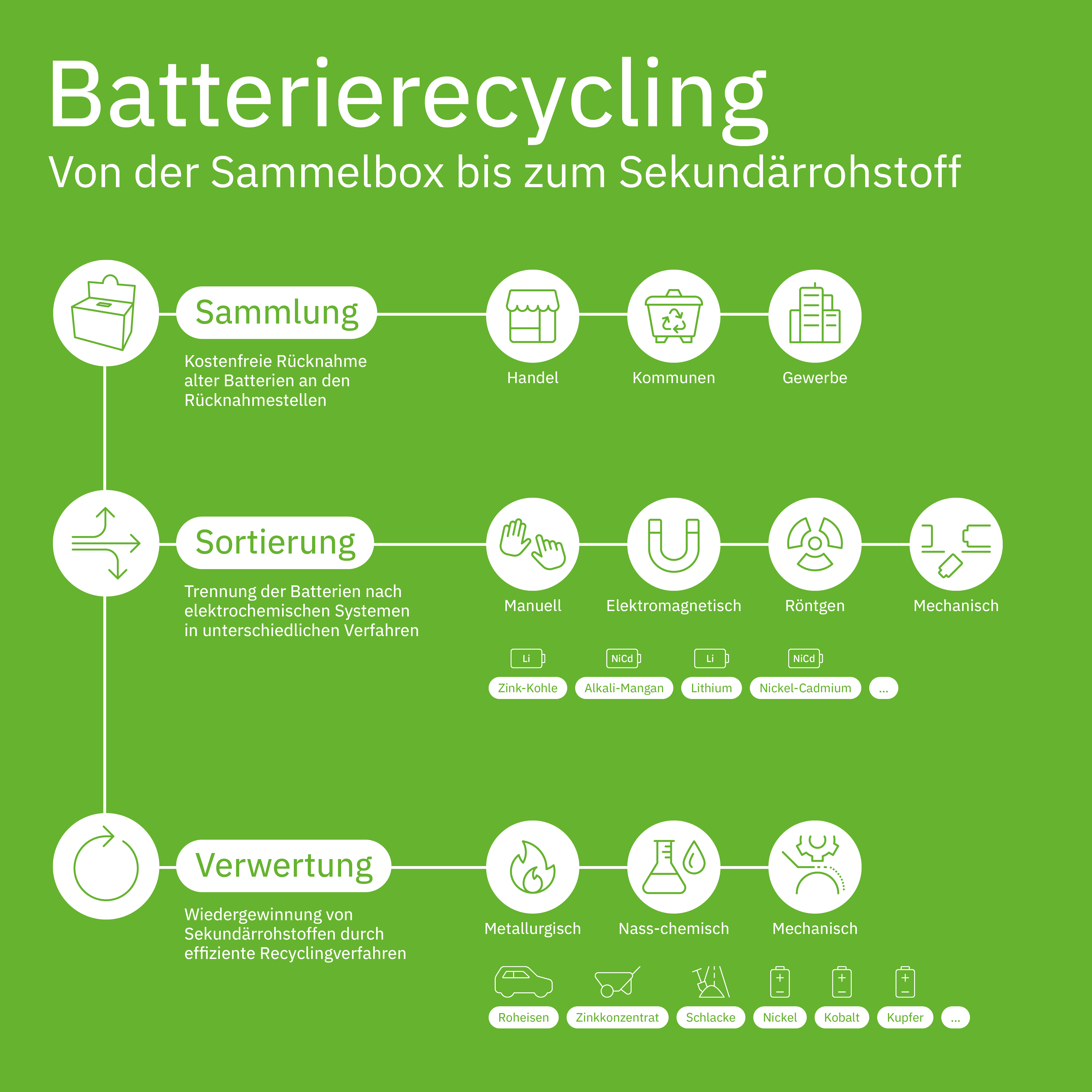 Seit über 25 Jahren stehen die Stiftung GRS Batterien und mit ihr seit 10 Jahren die GRS Service GmbH für die sichere, flächendeckende und umweltverträgliche Rücknahme, Sortierung und Verwertung von Batterien. Im Auftrag von Herstellern und Vertreibern von Batterien übernimmt die GRS Service GmbH die Produktverantwortung gemäß Batteriegesetz (BattG). In Zusammenarbeit mit dem großen Sammelnetzwerk und Dienstleistern im Bereich Logistik, Sortierung und Recycling sorgt die GRS Service GmbH für Effizienz und Sicherheit bei der Sammlung und Verwertung von Batterien. Mit der Einrichtung freiwilliger Rücknahmesysteme für den wachsenden Markt der Lithium-Industriebatterien hat die GRS Service GmbH schon frühzeitig den steigenden Sicherheitsanforderungen Rechnung.
