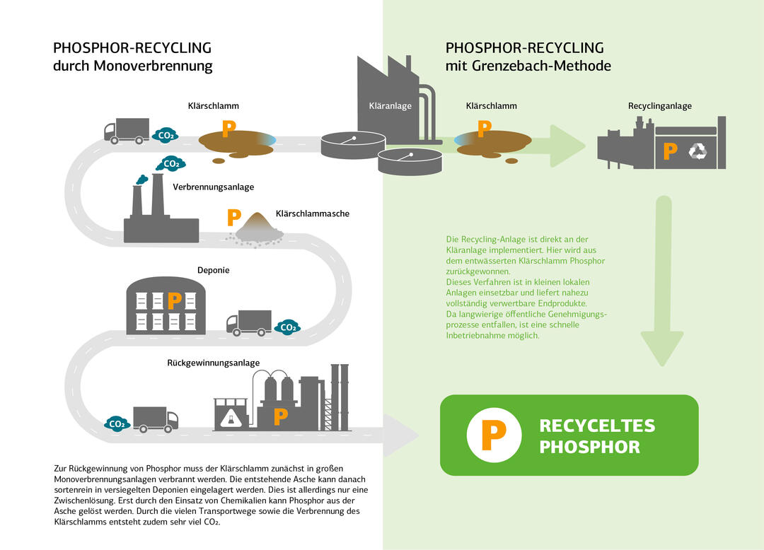 Das Grenzebach-Verfahren zum Phosphor-Recycling unterstĂŒtzt StĂ€dte und Gemeinden, den lebenswichtigen Rohstoff Phosphor direkt aus KlĂ€rschlamm zurĂŒckzugewinnen und dabei gesetzliche Vorgaben zu erfĂŒllen.