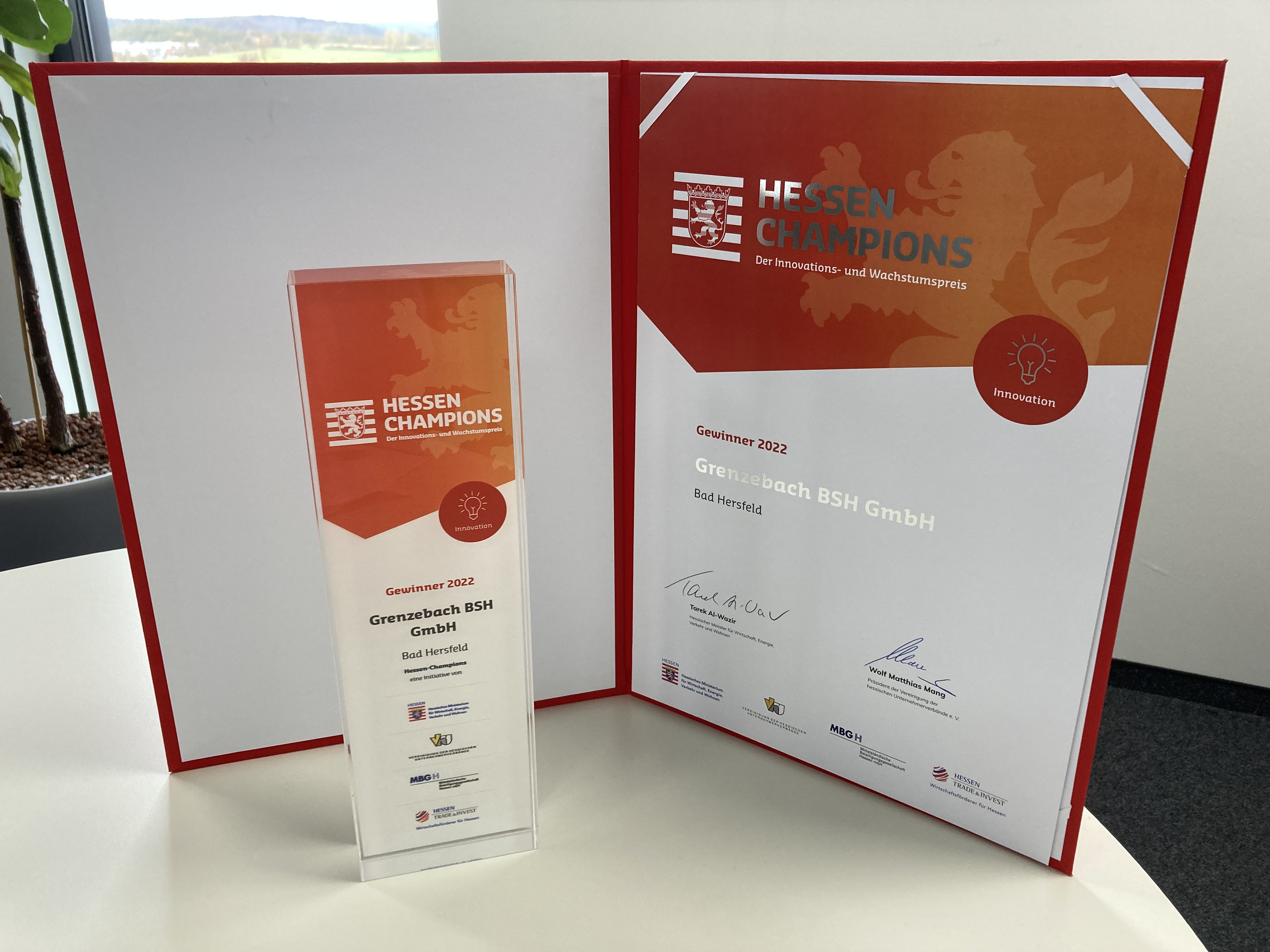 Grenzebach wurde 2022 mit dem Innovations- und Wachstumspreis des Landes Hessen, dem „Hessen Champion“, fĂŒr ihr innovatives Phosphor-Recycling Verfahren ausgezeichnet.