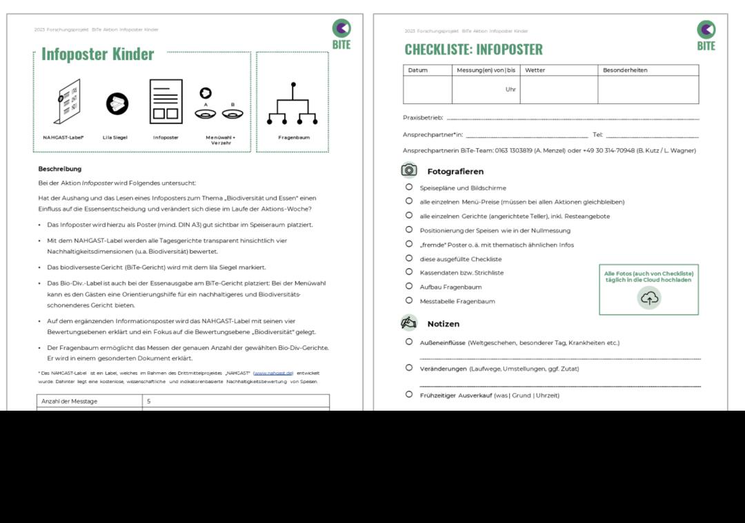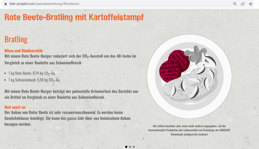 Das vom Bundesministerium für Bildung und Forschung geförderte Forschungsprojekt BiTe (Biodiversität über den Tellerrand) (Laufzeit 09/20 - 05/24) bringt Biodiversität auf den Teller, genauer gesagt in Mensen, Kantinen und Co. Die biologische Vielfalt schafft eine wichtige Grundlage für die Produktion unserer Lebensmittel. Gleichzeitig ist eine intensive Landbewirtschaftung für bis zu 70% des Verlustes der Biodiversität verantwortlich. Bisher wird jedoch wenig getan, um Entscheidungen unseres täglichen Konsums, sei es an der Supermarktkasse oder an der Ausgabe in der Kantine, biodiversitätsfreundlich zu gestalten. BiTe leistet hier einen wichtigen Beitrag, indem wir Großküchen zu Reallaboren machen. In Kooperation mit Praxispartnern aus der Außer-Haus-Verpflegung (von der Schulküche bis zum Krankenhaus) wurde eine Methode entwickelt und getestet, das die Biodiversitätsverluste von Mittagsmahlzeiten bewertet und damit vergleichbar macht. Diese Methode soll in den kostenfreien NAHGAST-Rechner (https://www.nahgast.de/rechner/) integriert werden. Mit diesem Instrument können Großküchen u.a. berechnen wie viele Treibhausgasemissionen durch ihr Menü verursacht werden. Im Mittelpunkt steht außerdem die Vermittlung von Wissen über Biodiversität durch Informations- und Nudging-Maßnahmen. Damit sollen gleichermaßen Gäste und auch Mitarbeitende in der Küche angesprochen werden. Gemeinsam mit ausgewählten Praxisbetrieben wurden dafür Formate und Materialien für den Speiseraum entwickelt, etwa ein Biodiversitäts-Comic oder Tischsets. Diese Materialien wurden anschließend bundesweit in über 20 Einrichtungen getestet. Dadurch konnten knapp 13.000 Gäste pro Tag Biodiversität auf dem Teller erleben und erfahren. Die entwickelten Formate stehen nun unter https://bite-projekt.com zur Verfügung und ermöglichen über das Projektende hinaus Einrichtungen die Förderung von Biodiversität in ihrer Küche.