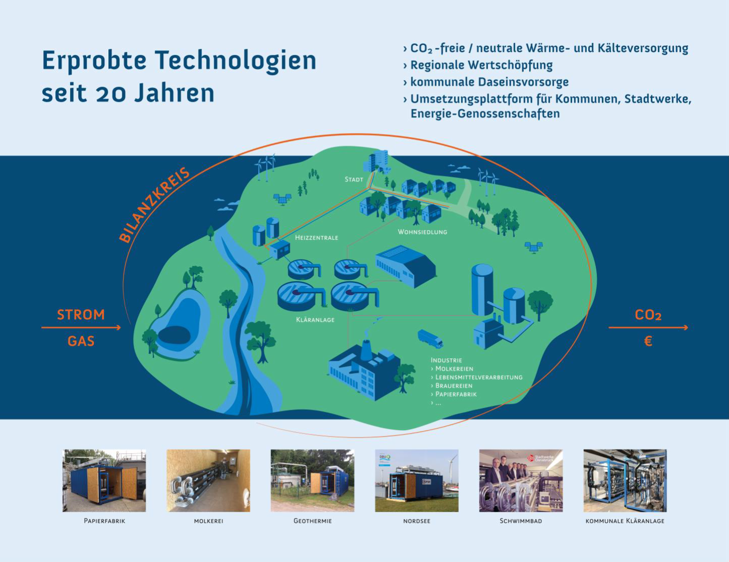 Durch Standardisierung der Komponenten, Schnittstellen sowie Steuerungs- und Regeleinrichtungen kann das System an die jeweiligen Anforderungen angepasst und in der Leistung beliebig skaliert werden. Für die Verteilung der Wärme hat das Unternehmen ein hocheffizientes Niedertemperatur- Wärmenetz entwickelt. Das ebenfalls modulare Mehrleiternetz erlaubt Heizen und Kühlen mit einer hohen Gleichzeitigkeit. Alle Lösungen werdenTaxonomie-Konform geplant und umgesetzt!