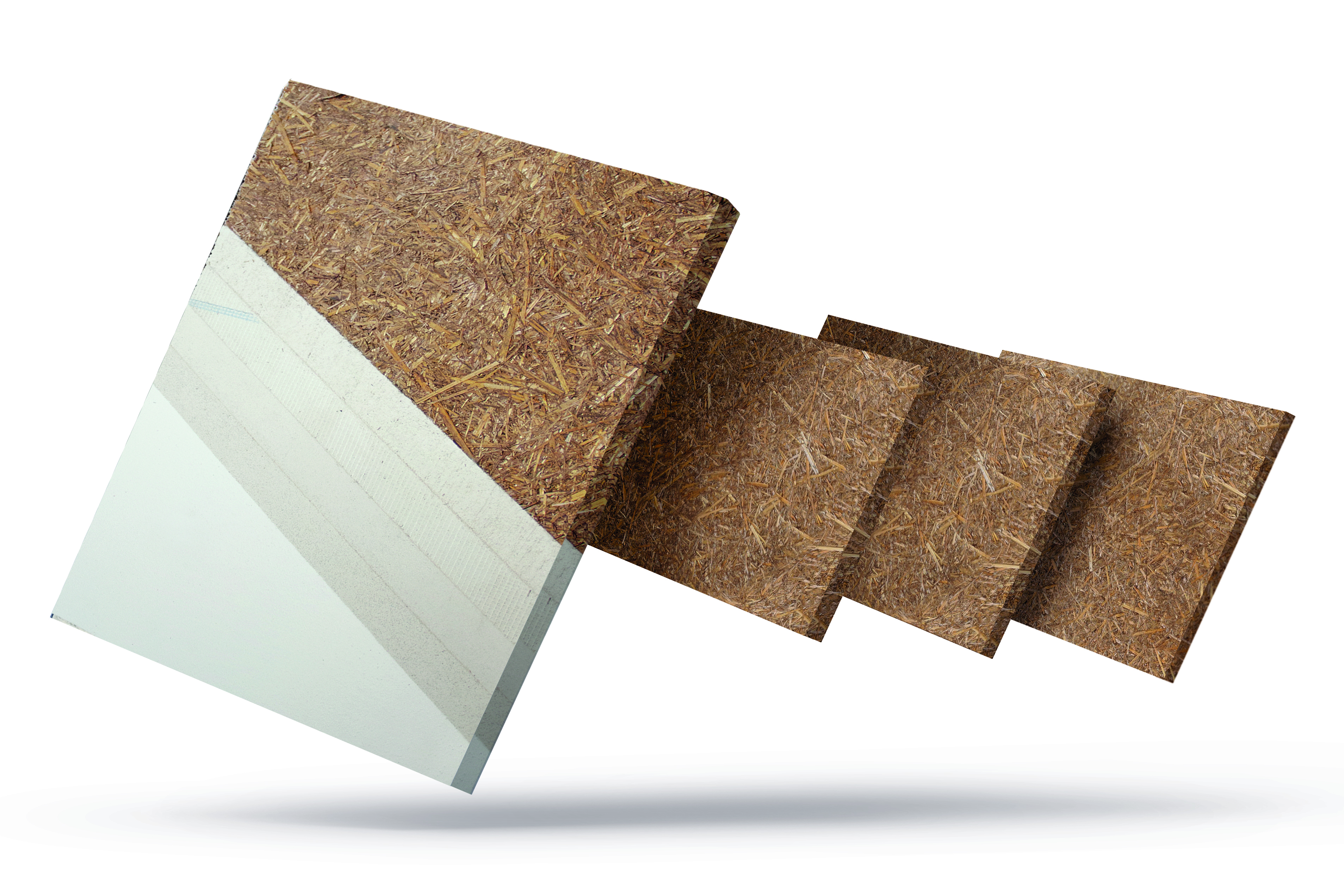 aus Stroh kann wie herkömmliche Innenputzträgerplatten verarbeitet und verputzt werden.