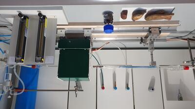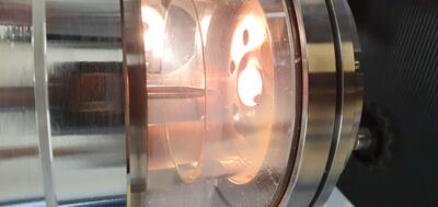 Mit dieser Apparatur demonstrieren wir für SchülerInnen, Azubis und die interessierte Öffentlichkeit die Zukunft der Stahlindustrie: Grüner Stahl. Darüber hinaus erproben wir in kleinem Labormaßstab Parameter (Temperatur und Kinetik der Reduktionsreaktion bei unterschiedlicher Feuchte des Wasserstoff-Gases, Bedingungen der Aufkohlung mittels Methanbeaufschlagung während der Abkühlung, etc.), die für unsere Kooperationspartner bei Saarstahl/Dillinger Hüttenwerke von Interesse sind.