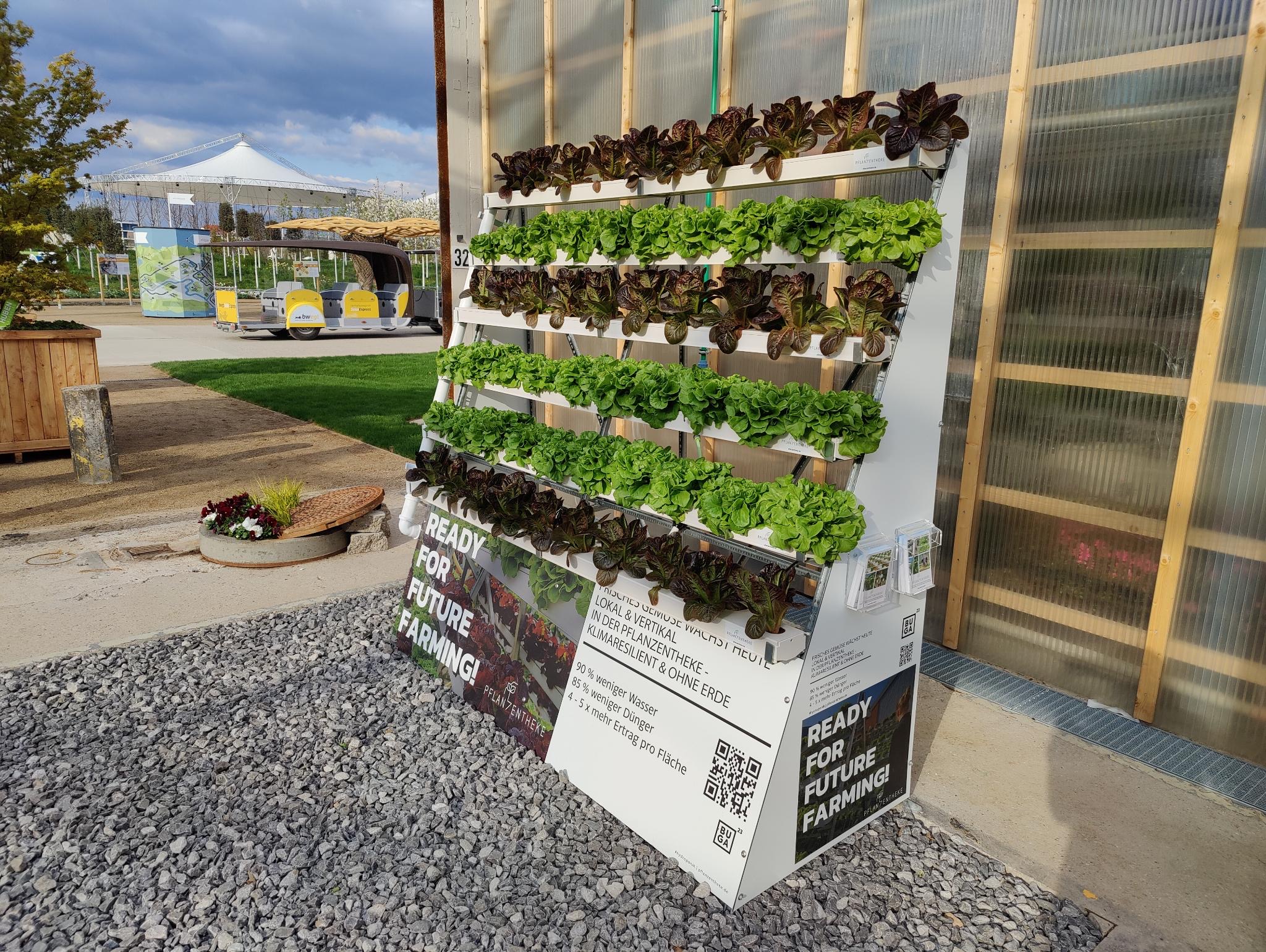 Die Pflanzentheke GmbH entwickelt und vertreibt vertikale Farmen für den Obst- und Gemüseanbau. Hierbei werden hydroponische Systeme eingesetzt, d.h. der Anbau von Obst und Gemüse mit Hilfe von Nährlösungen außerhalb der Erde. Durch geschlossene Kreisläufe und die gezielte Bewässerung der Pflanzen werden so, verglichen mit dem konventionellen Gemüsebau in der Erde, 90% des Wasser- und 85% des Düngerbedarfes eingespart. Der vertikale Anbau ermöglicht gleichzeitig ein Vielfaches an Ertrag pro qm verglichen mit dem konventionellen Anbau.