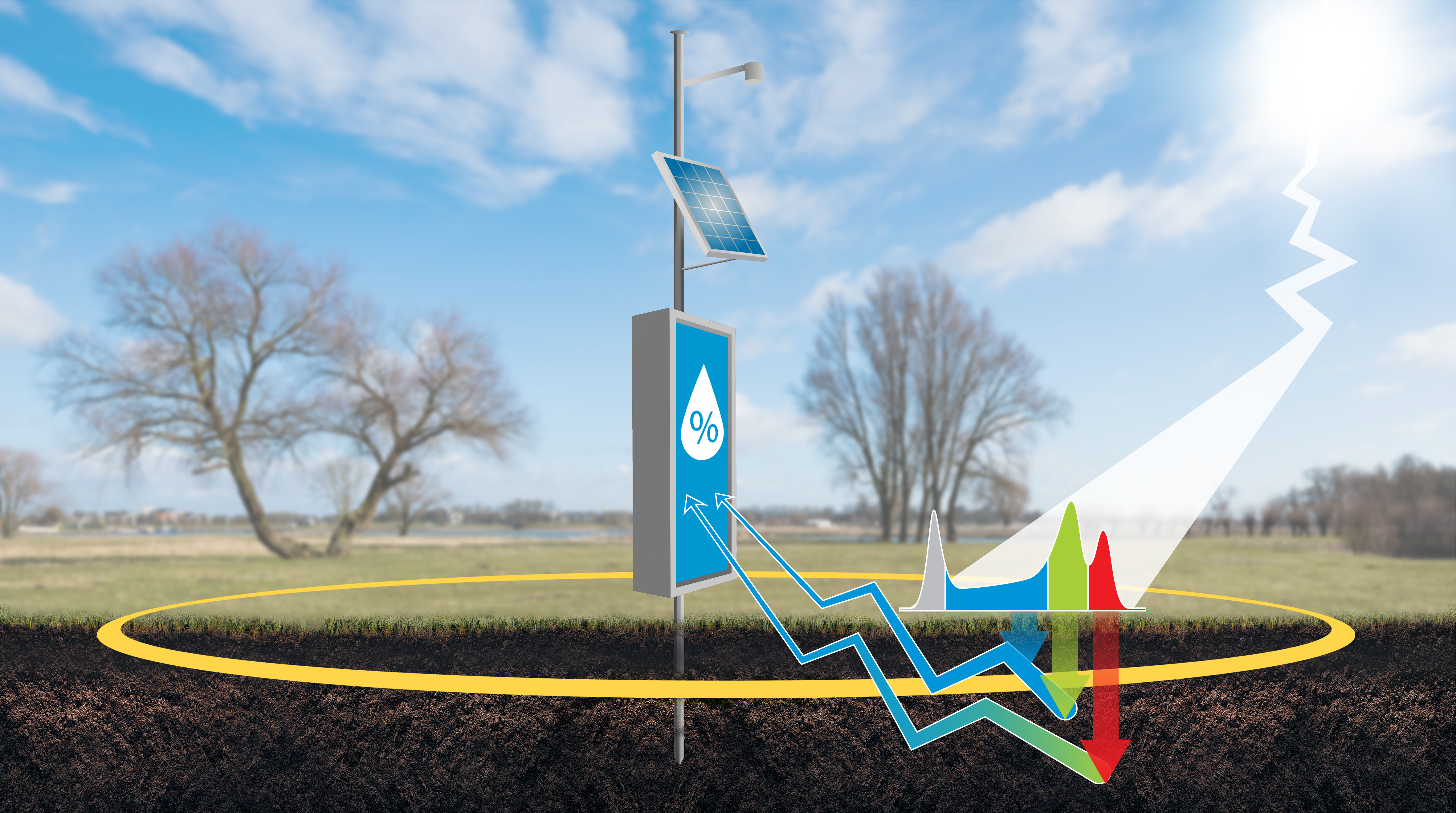 Das Monitoring der Bodenfeuchte kann helfen, die Böden nachhaltiger zu bewässern. Um die Bodenfeuchte ganzer Felder mittels Punktsensoren zu messen, sind sehr viele Sensoren erforderlich. Das macht das Monitoring aufwändig und z. T. unwirtschaftlich. Andererseits können Fernerkundungssatelliten die Bodenfeuchte nur auf sehr großen Skalen (z. B. ganze Landkreise) messen, was für den einzelnen landwirtschaftlichen Betrieb oft zu unspezifisch ist. Eine Lösung dieses Problems kann „von ganz oben“ kommen: Das "Cosmic-Ray Neutron Sensing (CRNS)" ist eine nicht-invasive Methode, die die Bodenfeuchte misst, indem sie vom Feld reflektierte Neutronen detektiert, die aus der natürlichen Hintergrundstrahlung resultieren. CRNS wird bereits von fünf großen Feuchte-Messnetzen verwendet. Tatsächlich muss aber die Vergleichbarkeit der Messungen untereinander und mit derjenigen von Punktsensoren bzw. Satellitendaten verbessert und der Einfluss von Störgrößen aus der Umwelt besser verstanden werden. Hier setzt ein europäisches Projekt an, das CRNS mit anderen Feuchtemessungen vergleicht. Durch eine derart verbesserte Messtechnik ließen sich lokale Umweltmaßnahmen für eine nachhaltige Landwirtschaft entscheidend optimieren.