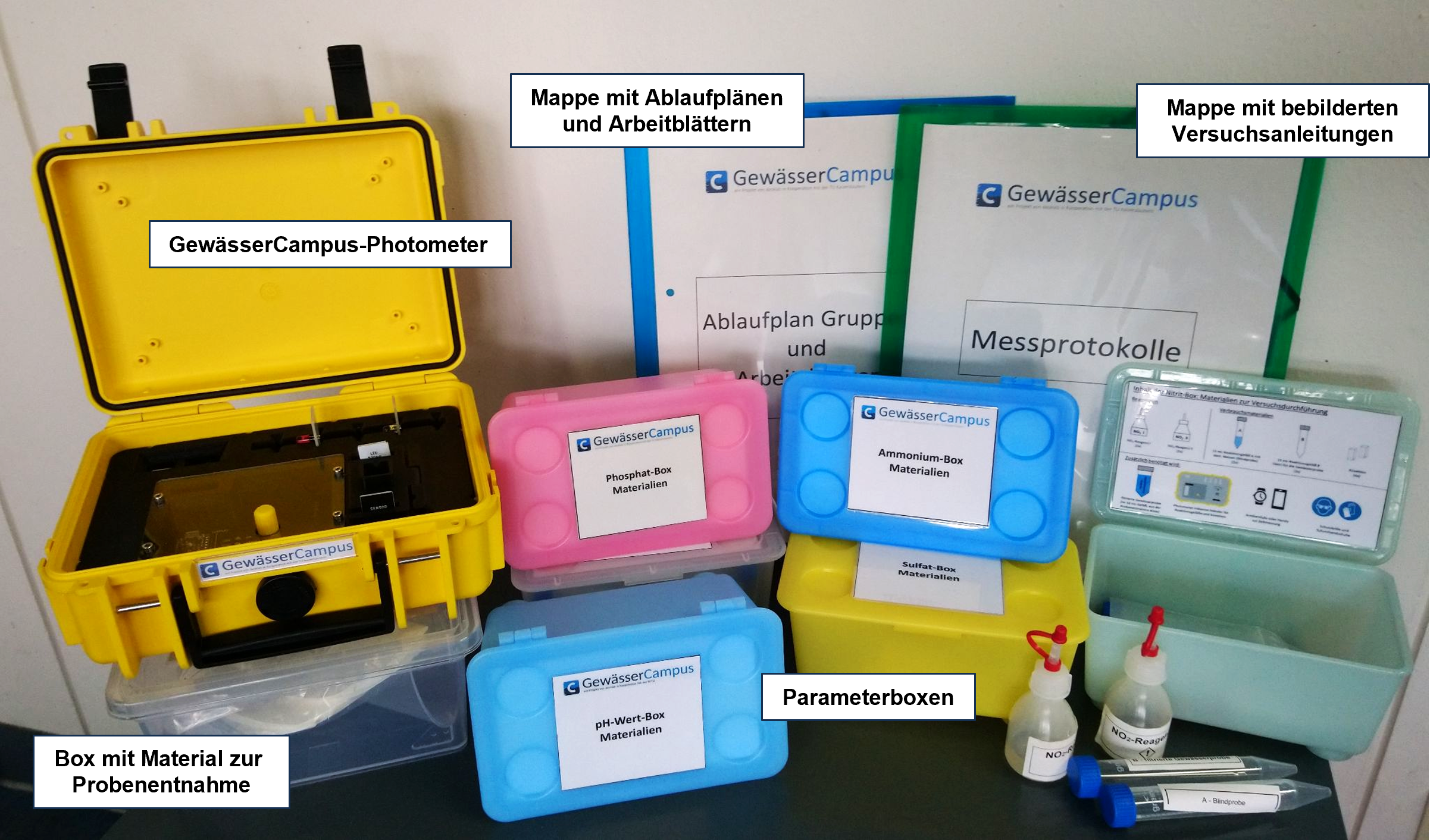 Die Ökologie von Gewässern ist zwar auch ein fester Bestandteil des naturwissenschaftlichen Unterrichts, doch aufgrund der komplexen Messprotokolle und der benötigten kostenintensiven Laborausstattung wird der Themenkomplex dort fast ausschließlich theoretisch behandelt. Die Analyse der Gewässergüte beinhaltet eine Konzentrationsbestimmung der für den chemischen Gewässerzustand nach der Europäischen Wasserrahmenrichtlinie charakteristischen Parametern Ammonium, Nitrat, Nitrit, Sulfat, Phosphat, Sauerstoff-Gehalt und pH-Wert. Dazu wurde ein Set einfach durchzuführender experimenteller Methoden und ein portables, kostengünstiges Photometer entwickelt.
